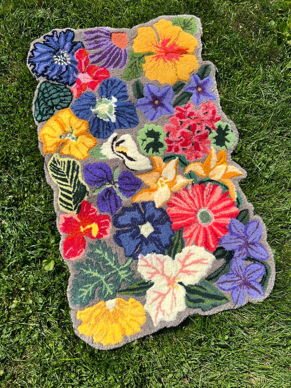 2 x 3 foot custom made rug. Made to order. These rugs are made with acrylic yarn of the best quality. I can make them any shape and design. I offer a wide variety of colors to choose from. Upload a design or ask to have one created. A chance to make a piece that visitors will talk about. 2-3 week production time required for a custom tufted rug.